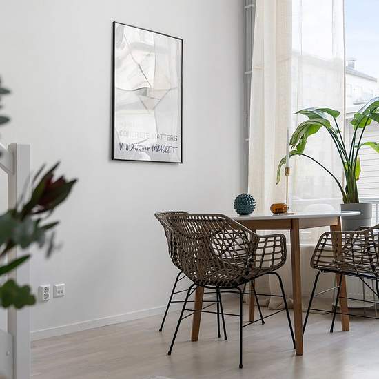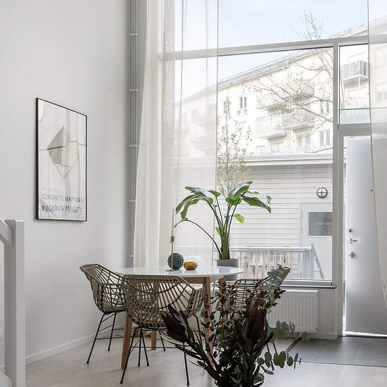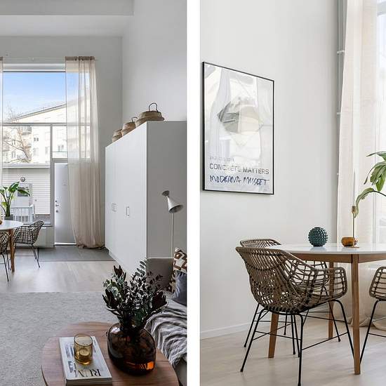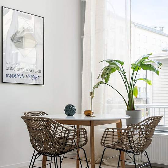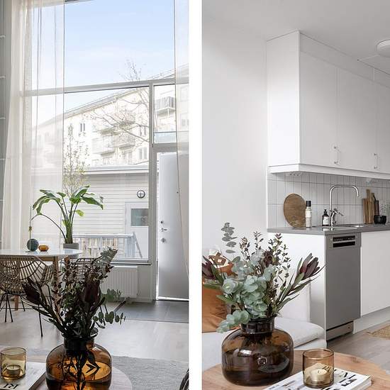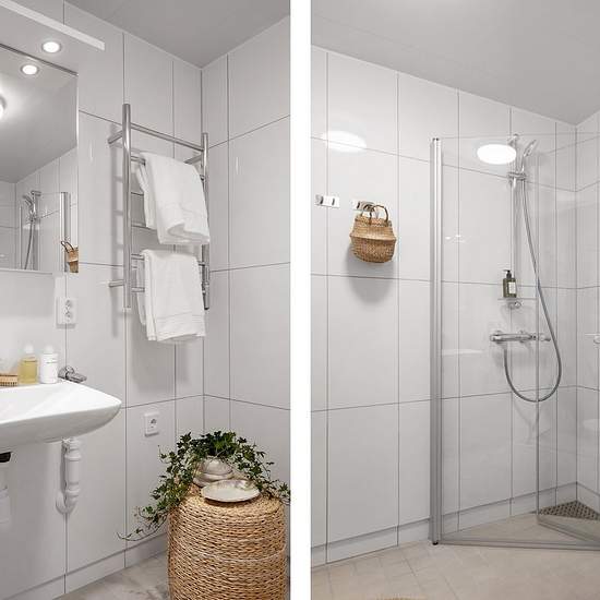 Köken är välutrustade med vita eleganta luckor från HTH. På golvet ligger en vacker ekparkett. Vaggar, tak och lister är vitmålade. Badrummen ar helkaklade med stora vita blanka plattor på väggarna och beige klinker på golvet. De är även utrustade med duschvägg i glas, spegelskåp med belysning, kromad handdukstork samt krokar. Badrummen är också förberedda for tvättmaskin och torktumlare. Fastigheten ar rökfri och har en stor grön innergård med gemensam odling, sittyta med pergola Bara några minuters promenad bort ligger Rågsveds tunnelbane...