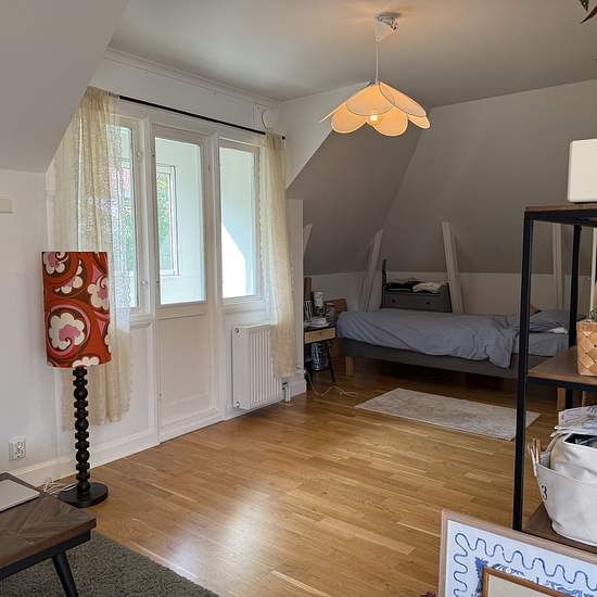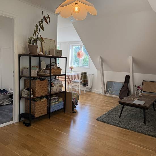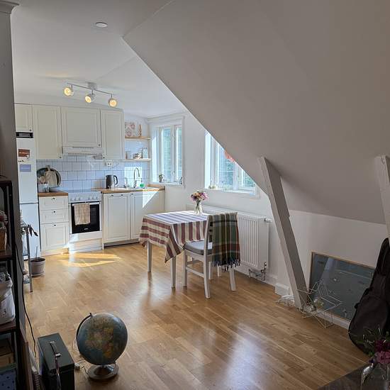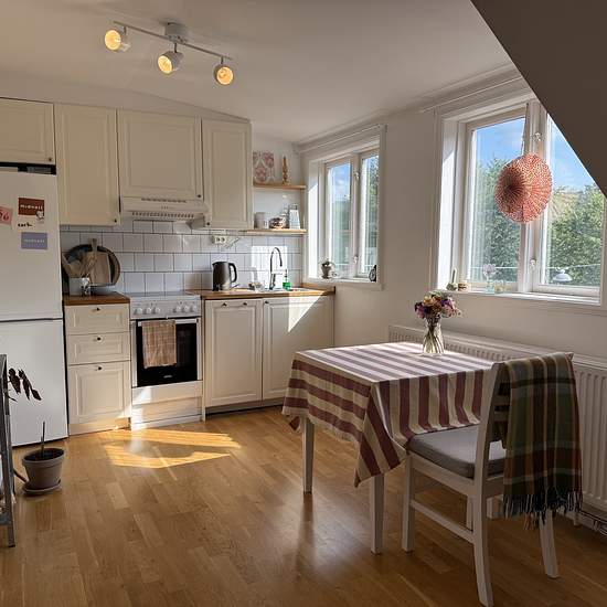 Cozy one-room-and-kitchen apartment of 40 m² in Villastan. Top floor in a small apartment building. For rent on a first-hand lease including heating and water. Rent 6478 SEK. The apartment has been recently renovated and is of a high standard. Fully tiled bathroom with a towel warmer. Oak parquet flooring throughout the apartment. Dishwasher. Stove with a hob. A small glass-enclosed balcony. Close to the city center and the university. Quiet, pleasant neighbors. The apartment is available for move-in on April 1.