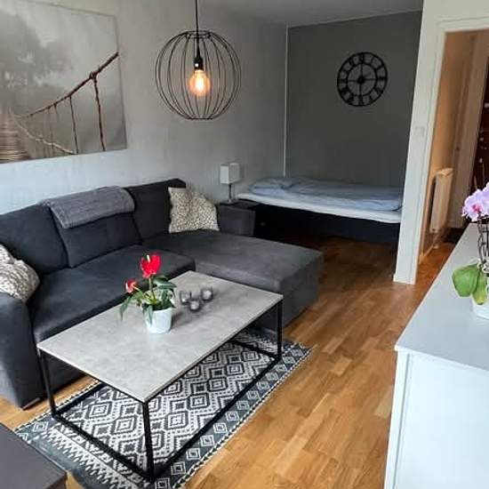 Included in the rent: all electricity, cable TV, internet, as well as access to a small gym and sauna. A washing machine is in the apartment, but a larger shared laundry room is also available. Rent SEK 6,000/month. Rented out 6 months at a time with the possibility of extension. The renter must first be approved by the condominium association. If interested, send a private message.
