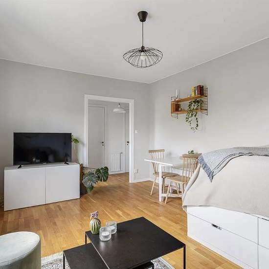 In central Mariehäll there is this one-room-with-kitchen apartment, with generous natural light and plenty of storage space. The apartment is located in a quiet area within walking distance to Sundbyberg. The apartment has a walk-in closet and ample storage in the built-up bed, and it also includes an attic storage room. The bathroom has a shower, a mirrored cabinet, a sink with a vanity and a towel warmer. The kitchen is decorated in light colors, with plenty of storage space. The living room has room for a dining table, a sofa set and a c...