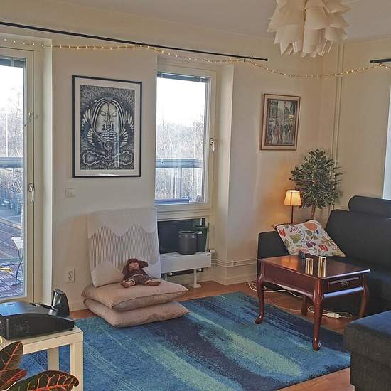 Hi there! We have one room available in our beautiful, newly built 4-bedroom apartment in Årsta (100 sqm). Close to Södermalm. The space is bright, modern, and perfect for creating a warm and welcoming home. About the apartment: Large enclosed balcony, perfect for relaxing; two showers/toilets for convenience; common areas with big windows and an open floor plan; a TV for cozy movie nights and video games! Metro access is just a short walk away. Dishwasher and washing machines. The room comes furnished with an adjustable desk, large wardrob...