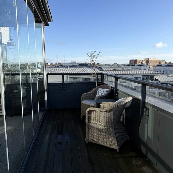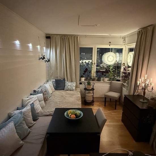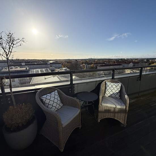 Möjligt att hyra depositionsfritt genom Samtrygg. Månadskostnad: 12995 kr. ________________________________________________________________ Snabbast bokar du visning genom att följa denna länk till Samtrygg: Här hittar du även fler bilder och mer info. ________________________________________________________________ På 8:e våningen ligger denna studiolägenhet. Fullt möblerad och utrustad. Lägenheten har milsvid utsikt och är insynsskyddad. Pricken över i är del av en fantastik takterrass i söderläge. Terrassen som hör till är ci...