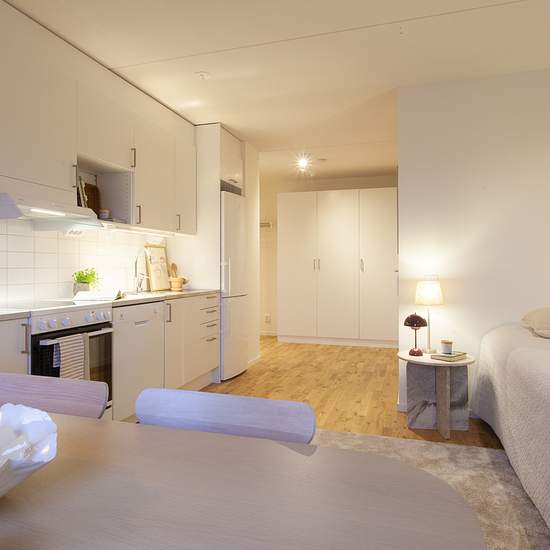Letar du efter ett stilrent och bekvämt boende mitt i stan? Den här nyproducerade ettan om 35,7 kvm erbjuder allt du behöver i ett hem – smart planlösning, hög standard och en härlig balkong som förlänger bostadens yta. Lägenheten har en öppen och luftig känsla med genomgående ljusa materialval och ekparkett. Köket är fullt utrustat med bland annat diskmaskin, bra förvaring och arbetsytor – perfekt även för det mindre hushållet. Det helkaklade badrummet har en kombinerad tvättmaskin och torktumlare, vilket gör vardagen både enkel och bekväm....