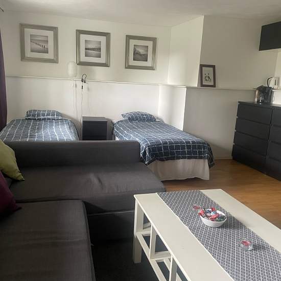 Denna lägenhet på 35 kvadratmeter ligger på bottenvåningen i vår villa. Den har egen ingång och du har ditt eget kök och badrum. Dessutom har du tillgång till en tvättstuga, parkeringsplats och uteplats med grill. Lägenheten är fullt utrustad. Vårt hus ligger i Mellansjö, 15 km söder om centrala Stockholm. Det tar 15 minuter att ta sig dit med bil eller 30-40 minuter med kollektivtrafik. Vi bor 2 km från Farsta Strand där du hittar både tunnelbana och pendeltåg. Om du inte vill promenera till Farsta Strand finns det en buss 150 meter från...