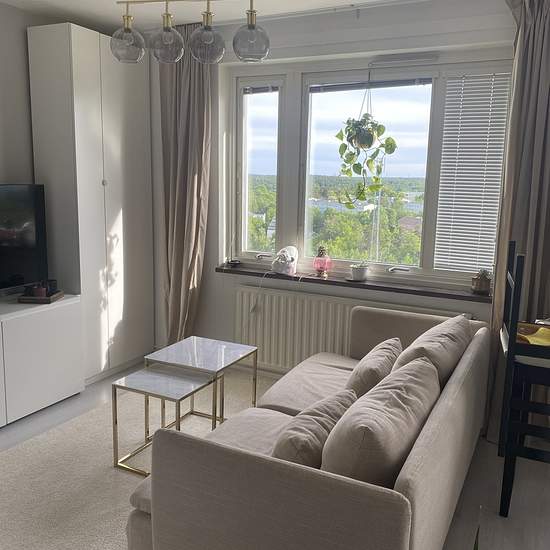 Välplanerad och fräsch liten pärla i ett lugnt område i Farsta, nära till sjön och naturen. Lägenheten är möblerad. 3 min promenad till pendeltåg, 6 min promenad till tunnelbanan. Vad ingår i hyran: El, vatten, wifi Vad för hyresgäst söker jag: En eller Max 2 personer. Du/ni är skötsamma och respekterar föreningens regler. Jag flyttar tillfälligt utomlands, därav hyr jag ut min lägenhet. Serviceavgift för hyresgäst: 684