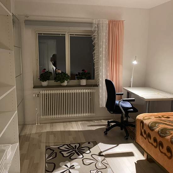 A ROOM for ONE PERSON. A nice, quiet place. Short term rentals. The place is not for strong smells incl. from food and perfumes, due to some medical reasons. 15 min to the City. 10 min to the lake and groceries. A furnished room in a large apartment is for rentals incl. el, water, WiFi, access to a laundry, a kitchen, 1 of 2 bathrooms, 1 of 2 balconies with nice views. My home is in 3 min walking distance from the commuter train station Farsta strand and in 7-9 min from the Metro Farsta strand. You reach Stockholm City in 15-20 min, Arlanda...