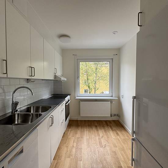 Renoverad 1 rok om 44 kvm – modern och prisvärd med smart planlösning! Välkommen till denna välplanerade enrummare om 44 kvm, belägen en trappa upp i huset. Här bor du modernt, fräscht och bekvämt – till en mycket hyra där värme, vatten, el samt TV och bredband från Telia ingår. Bostaden erbjuder en ljus och rymlig planlösning med plats för både soffa, säng och matplats. Köket är modernt utrustat och försett med diskmaskin som förenklar vardagen. I hallen finns praktiska garderober och i bostaden ryms även en klädkammare – gott om förvaring ...