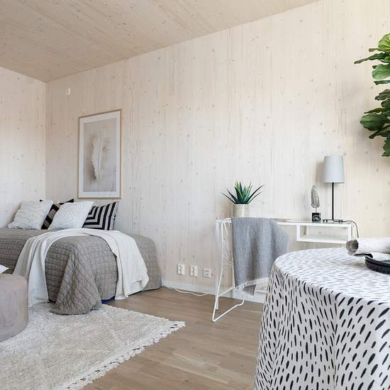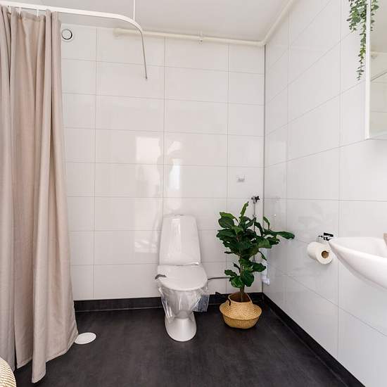 Bright and open apartment with a French balcony. The building is constructed from cross-laminated timber using modern volumetric construction techniques to minimize climate impact. The facade's black-tarred cladding evokes fallen pine cones with their spiky scales and gives a new, striking silhouette to Gävle's cityscape. At the very top there is a large sunny roof terrace with a fantastic view over Godisfabriken, the Gävle River and Gävle Strand. Here, as a tenant, you are offered a green oasis with a beautiful pergola and lush planting for...