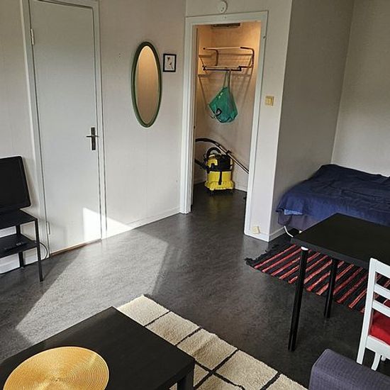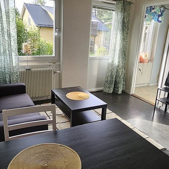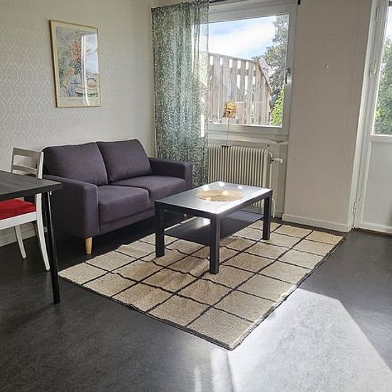 For rent to companies. Spacious and well-planned apartment with all the equipment you need. Lovely patio facing southwest. Sleeping alcove. 120-160 cm wide bed. 55" TV with Google TV (not the one in the picture). Broadband and wifi. Parking space included. Furniture updated since the pictures were taken. Service fee for tenant: 405