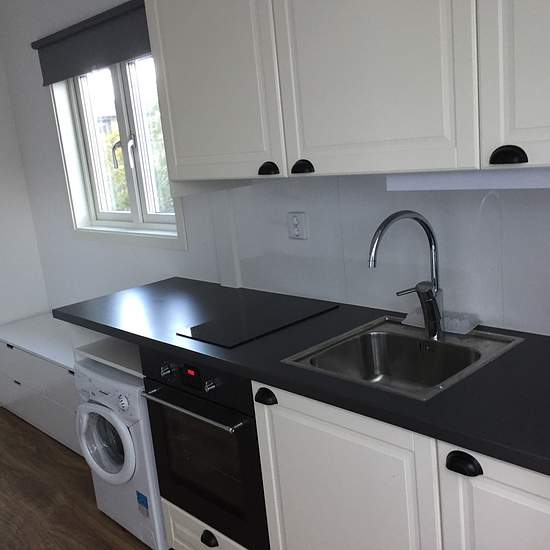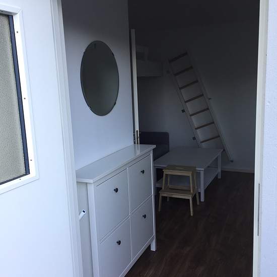 A small apartment in our garage building for rent. Loft bed. Rent including heating. Sofa and coffee table not included. Free street parking. 400–500 m to the bus stop. No outdoor space. Service fee for tenant: 272