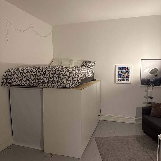 Charming apartment located on a quiet inner courtyard, completely insulated from traffic noise. The residence is characterized by: - Generous ceiling height and a beautiful tiled stove. - Balcony facing the inner courtyard which offers plenty of natural light. Rent: 10 000 kr/month, with heating, water, electricity, internet and TV included in the price. Amenities in the building: - Laundry room conveniently located in the same stairwell. - Access to bicycle storage, a recycling room and more. Information about the floor plan and photos: Som...
