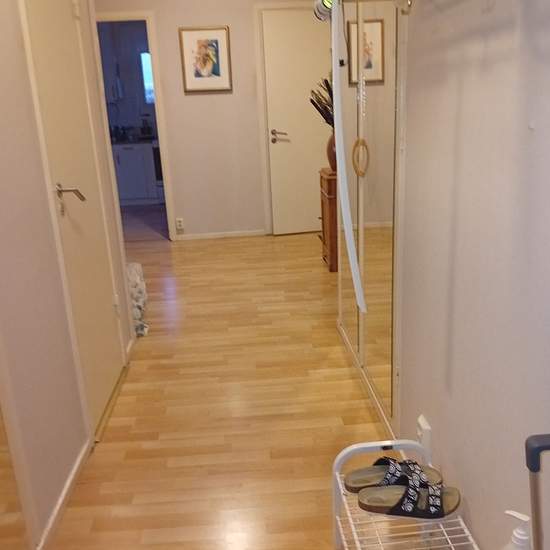 Jag är pensionär och ofta hemma dagtid. Passar studenter eller pendeljobbare, eller boende för några månader. Helst en kvinnlig student. Uthyrning av litet, möblerat rum 7 m2. Delad toalett med den andra boende, studenten och delad dusch. Bor högst upp, våning 9. Lugnt område. Fin utsikt. 100 m till busshållplats och 10 minuter till Korsvägen, ca 15 minuter härifrån till Chalmers. Bussarna går var 15 minut. Det finns en välsorterad mataffär i närheten. I detta område, Kallebäck byggs det mycket just nu. Cykel förråd finns. Lägenheten har ...