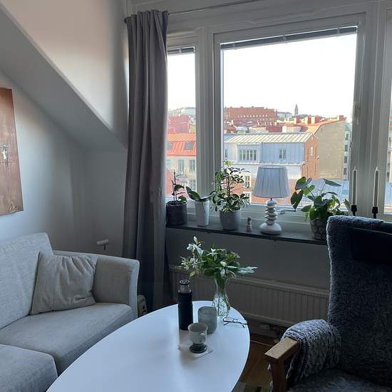 About the apartment: NOTE! You now have the opportunity to apply for this short-term contract in the popular central Annedal. Bright and cozy apartment with windows on two sides, with a view of Skansen Kronan on one side and a balcony on the other. The apartment was completely renovated in April 2018 (except for the bathroom, which is original - see example photo). The person who receives the contract will keep their days on HomeQ. We cannot say how long the agreement will last, but a maximum of 4 years as we are planning a future pipe reno...