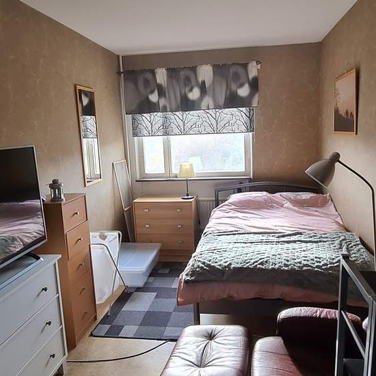 Hi. We have a room available with move-in on March 1. Preferably long-term, at least 6 months. It is furnished with a bed, desk, good storage and a TV. The rent is 4000 SEK + one month’s deposit; this includes broadband, electricity and various household items, with a shared kitchen and bathroom. We live in Kviberg, near a nature area with good public transport right outside; it takes about 15 minutes to the city center and 22 minutes to Chalmers. The room is part of a four-room apartment and is about 13 m². There is a cat and a dog in the h...