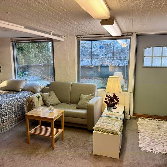 Vi har en väldigt fin 1.a på ca 30m2 med kök, badrum och liten uteplats, egen ingång i enskild del av vårt hus som ligger i Hägersten, 500m till T-bana Axelsberg som vi hyr ut till rökfri, djurfri skötsam person med tillträde 1 mars. Är du dessutom vegetarian så kommer det prioriteras. Lägenheten hyrs ut möblerad. Ugn, frys och tvättmaskin, ev. parkering finns. Hyran är 9000 kr/mån exkl. el/värme (ca. 1000kr/månad) och med en månads deposition. Uppsägningstiden 2 mån båda håll. Gäller tills vidare men utan besittningsrätt. Om du skulle va...