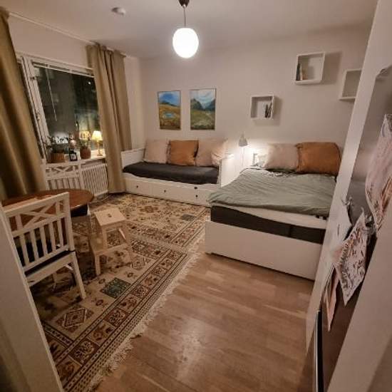 Lägenhet på 24 kvm i Midsommarkransen Nu hyr jag ut min fina, bra planerade lägenhet på 24 kvm i Midsommarkransen, endast 500 meter till tunnelbanan. Om lägenheten:Möblerad med 160 cm säng, soffa, bord, Gott om förvaring: garderober + lådor under säng.Riktigt kök med spis, ugn, kyl och frys. Lugn byggnad, trevlig förening Övrigt: Inflytt från: 1 mars. Den hyrs ut i ett år med eventuell möjlighet till förlängning. Hyreskontrakt skrivs. I hyran ingår: bredband, vatten, värme och el. Krav: Rökfri hyresgäst och inga husdjur. 1 månads deposit...