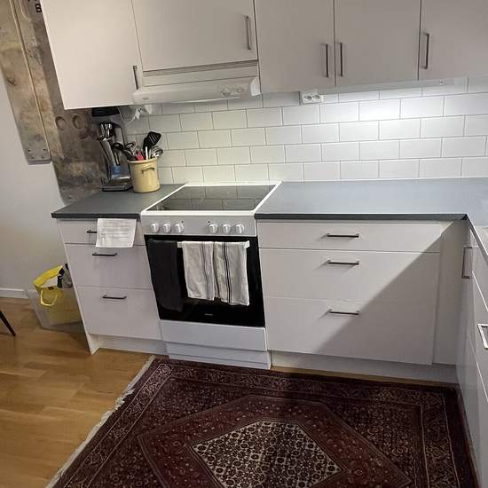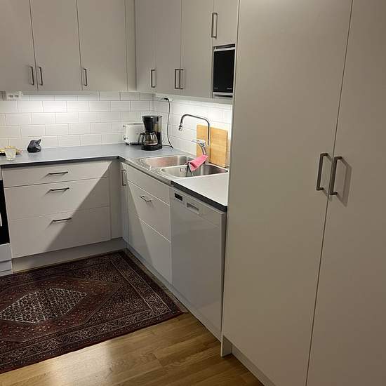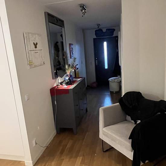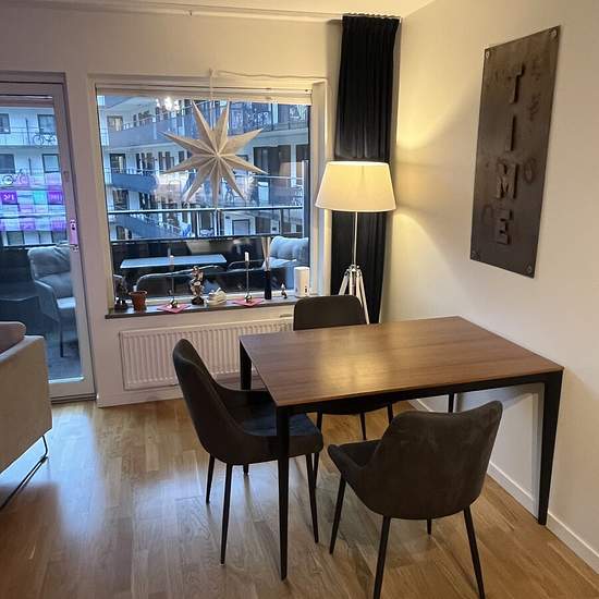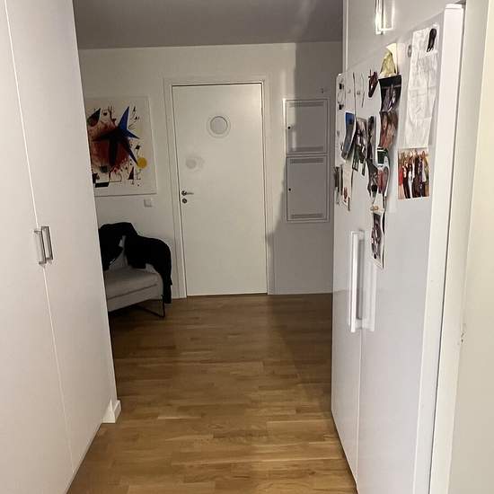 OVERNIGHT APARTMENT Shared 3-room-and-kitchen apartment with occupant. The room is located to the left by the apartment door and hallway. Further straight ahead are the living room and kitchen; on the left side there is a shared toilet and shower, a washing machine and dryer, and one additional room where the occupant lives. Balcony with outdoor furniture and at the entrance a walkway with a table and chair. The rent includes access to a well-equipped kitchen as well as electricity, heating and hot water for normal consumption. Good public t...