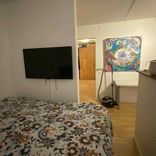 Renting out my one-room apartment (47 m2) as I don't need it. Move-in can be anytime. You can, of course, register your address here. Everything (electricity, broadband, etc.) is included in the rent. Unfortunately, the basement storage is not included. The association has guest parking, a sauna, a gym and a guest apartment to rent. Rented out for six months primarily, but there are good opportunities to extend if we agree and everything works well. Contact me for questions Erik Partially furnished: * 180 cm bed * TV by the bed - needs an...
