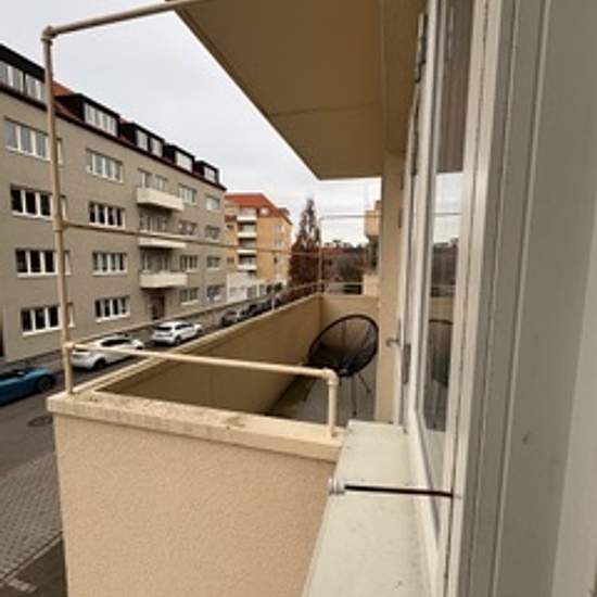Ljus och fin 1:a med 2 balkonger! Vitt kök med kyl/frys, fläkt, spishäll. Vackert ljust rum med vita väggar och parkett samt utgång till balkongerna. Helkaklat badrum med dusch och kommod. På hyran tillkommer avgift för kabel-TV med 85:-/mån. Angiven hyra avser 2025-års hyresnivå. Planritning saknas. Vi reserverar oss för ev fel i annonsen. KRAVPROFIL: bruttoinkomst från arbete, pension eller studier motsvarande 2,5 x hyran. Skulder eller betalningsanmärkningar från KFM eller skuldsanering godkänns ej. Om CSN är enda inkomstkällan krävs bor...