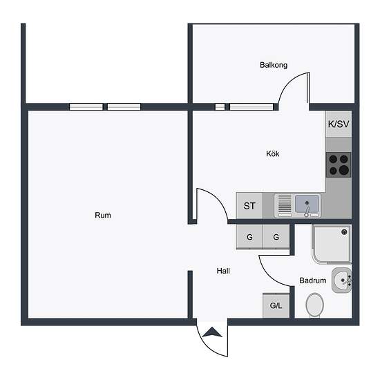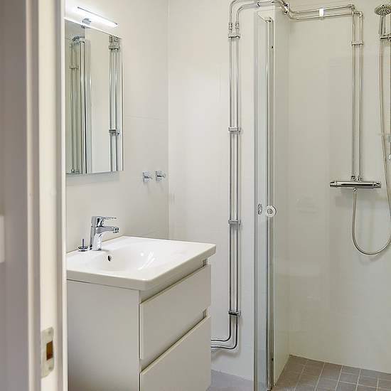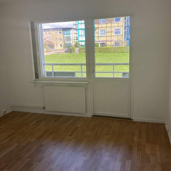 A welcoming hallway with storage in a wardrobe and a linen cupboard. The kitchen is separate and is equipped with a fridge/freezer, and from the kitchen you can access the apartment’s balcony/patio. The living room is spacious and has plenty of room for both a sleeping area and a small sofa set. The area consists of 12 brick buildings. Between the buildings are green inner courtyards with playgrounds and an allotment area. Bicycle storage, a waste/recycling room and laundry rooms are located in six courtyard buildings in the area. All apar...