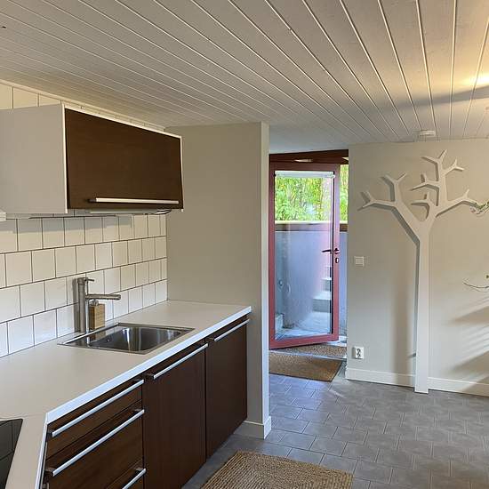 One-room apartment with kitchen for rent in a house in Huskvarna. The apartment is located on the basement level with its own entrance. Access to a small private seating area in the garden. Suitable as temporary accommodation or for a student. Fresh bathroom and kitchen. Underfloor heating. The kitchen has a dining table for about 4 people, storage, washing machine, oven, microwave and fridge/freezer. Bedroom with sofa bed, coffee table, TV and wardrobe. The bathroom has a shower, toilet and sink. The apartment is rented furnished (except ...