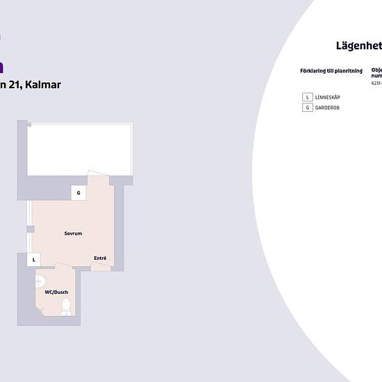 Studentrum på Tullslätten 21 Kalmar. Tullslätten ligger med gångavstånd till Kalmars stadskärna med affärer och restauranger samt Kalmar centralstation. Här har du även närhet till Kalmarsundsparken och stadens centrala badplatser. Studentrummet har en öppen planlösning. Allrum med plats för säng och övrigt möblemang samt klädupphängning och förvaringsmöjligheter. Badrummet är utrustat med wc, handfat, badrumsskåp, handdukstork, spegel och dusch. Tvättstuga och miljöhus ligger på gården. Hiss finns från entréplan. Rummet ligger i en korridor...