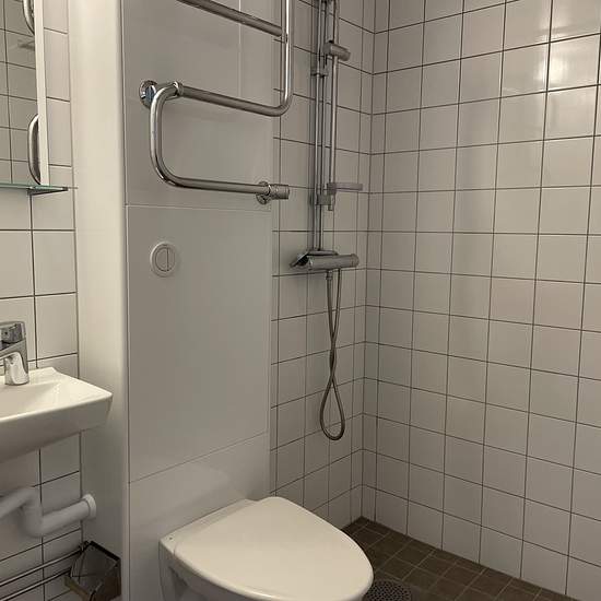 Student apartment at Kantorsgatan 10 Kantorsgatan, Rikshem’s largest student area in Uppsala. Kantorsgatan is located in the pleasant Kvarngärdet area, about two kilometers from Uppsala city centre. Here you live in a modern student apartment with a kitchen and bathroom. Hallway with coat hanging space and a wardrobe. The apartment has painted walls and a marble windowsill. There is linoleum flooring throughout the hallway, kitchen and room. The kitchen is equipped with a fridge/freezer and a stove with a glass-ceramic hob. A cabinet for a m...
