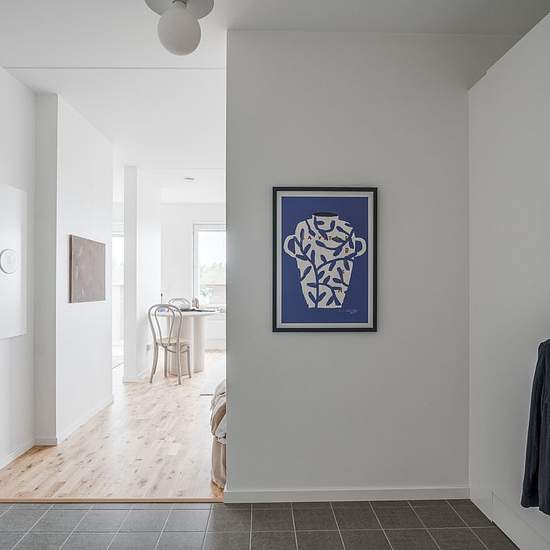 Den här lägenheten på 34,6 kvadratmeter ligger på tredje våningen på Torpängsgatan 12B i Knivsta. Det är en välplanerad etta där ytorna har disponerats för att skapa ett funktionellt hem med en öppen känsla. Innanför dörren finns en hall med plats för avhängning och förvaring i form av inbyggda garderober och städskåp. Genomgående i bostaden ligger ett parkettgolv som möter ljusa väggar, vilket ger ett enhetligt intryck. Vardagsrummet och köket är integrerade i en öppen planlösning, vilket ger plats för både en soffgrupp och en matplats. Kö...