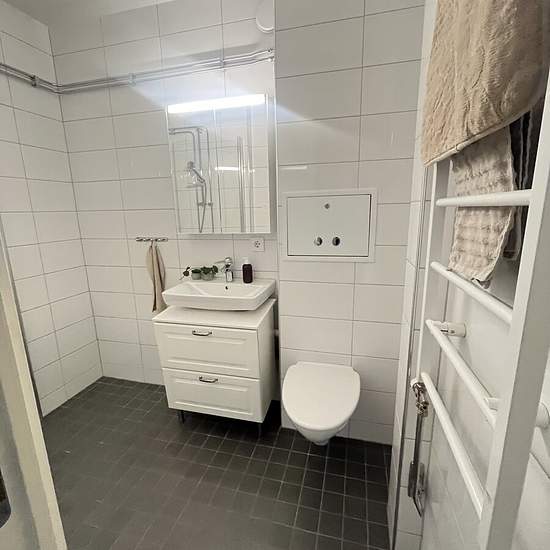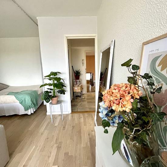 For sale — privately owned apartment in Kristianstad Note! This is a sale — not a rental. Private sale. A studio in a quiet area of Kristianstad, close to the town center and nature. The apartment is fresh and nice; the laundry room is in the same building. Low rent with Wi‑Fi and TV channels. Service fee for tenant: 143