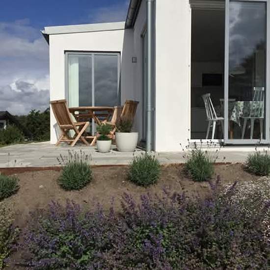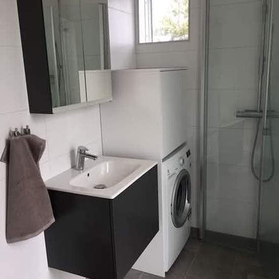 We are renting out our guest cottage in Åsa, which is situated on a beautiful natural plot with sea views and fantastic evening sun. The cottage is architect-designed and was built in 2017. It is of a high standard with, among other things, underfloor heating, a modern kitchen and a bathroom with a washing machine. The kitchen is equipped with a dishwasher, large induction hob, convection oven, microwave, fridge and freezer. A large sliding window section and a double patio door can be opened toward the terrace, the sea and the lovely evenin...