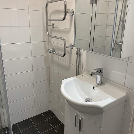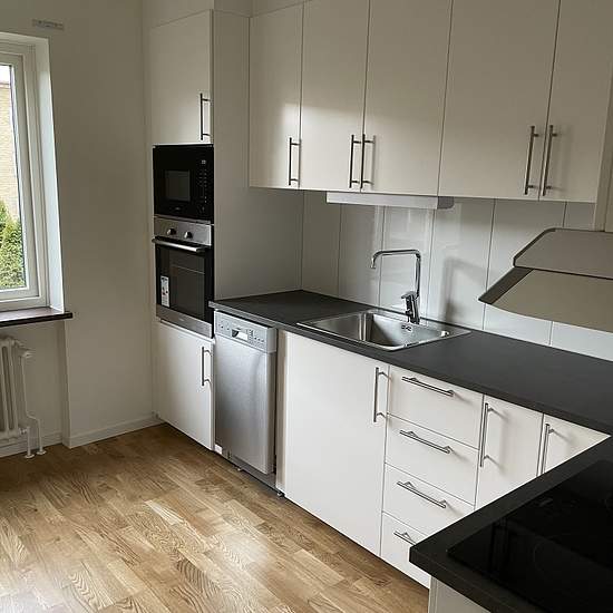 Pleasant, fully renovated studio apartment in central Landskrona Welcome to this bright and modern studio that underwent a complete renovation in 2022. Here you live with tasteful material choices and a high standard, right in central Landskrona close to everything you need. The kitchen is equipped with white cabinets, stainless-steel appliances, a dishwasher, an induction hob, and a built-in convection oven and microwave. The fully tiled bathroom offers a shower, underfloor heating and a towel warmer for extra comfort. The hallway has ti...