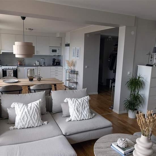 Large, generous studio on the second floor of a newly renovated building. Large windows for optimal light and a generous east-facing balcony. Open-plan layout between the kitchen and living room/bedroom, dishwasher and built-in microwave. WC with a shower with folding doors. A storage room belonging to the apartment is in the attic and the laundry room is located on the ground floor. Close to school, playground, sports field, Puls Arena and a grocery store. Good public transport via regional and city buses and within cycling distance to the ...