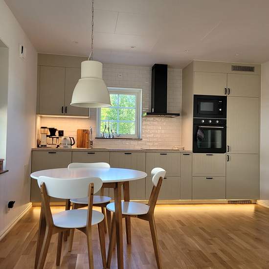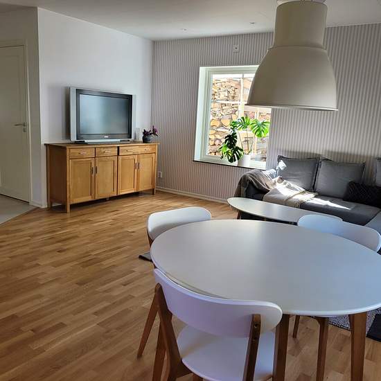 Newly built, homely apartment of 45 m² (open-plan) available for rent immediately — includes a TV - Quiet, close-to-nature location - About a 10-minute walk to Lerum town centre - Close to several lakes, forest and nature reserves — perfect for walks and runs The accommodation offers: - Fully equipped modern kitchen - Bathroom with shower & access to a laundry room - Sofa bed (140 cm) - TV with PlayStation 4 - Patio with grill - Free parking - WiFi, water and electricity included Rent 8700 SEK/month Service fee for tenant: 430 SEK