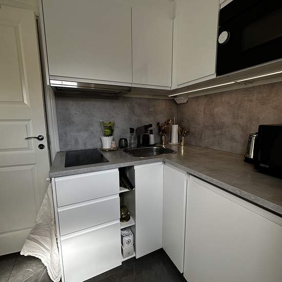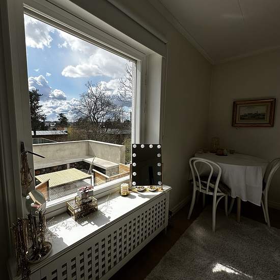 Studio of 27 square meters in a villa in Herserud, Lidingö for rent. In a villa on Lidingö with a wonderful view and a very central location we are renting out a separate apartment. The apartment is 27 square meters, has its own entrance and access to a patio. In addition to one room with built-in wardrobes there is a separate kitchenette with stove, refrigerator, freezer compartment and microwave, as well as a bathroom with toilet, shower, washing machine and tumble dryer. The apartment was completely renovated in 2019. Service fee for ten...