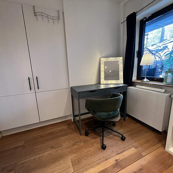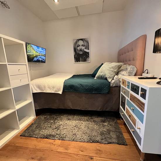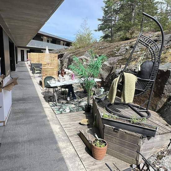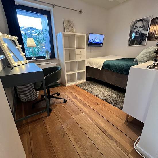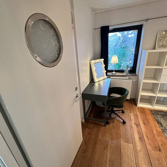 Room for rent for weekly commuters (1 person) A bedroom for one person with a single bed (1.20 m wide) in a tasteful 3-room apartment on the ground floor with a small patio outside the house in a quiet location facing rock and woodland. Access to a kitchen with fridge/freezer, dishwasher, microwave, hob and oven. Shared shower and WC. Large laundry room in the building, as well as a washing machine in the bathroom. Only two stops from the city center – close to Ropsten, Hjorthagen, Norra Djurgårdsstaden and Frihamnen. Very good transpo...