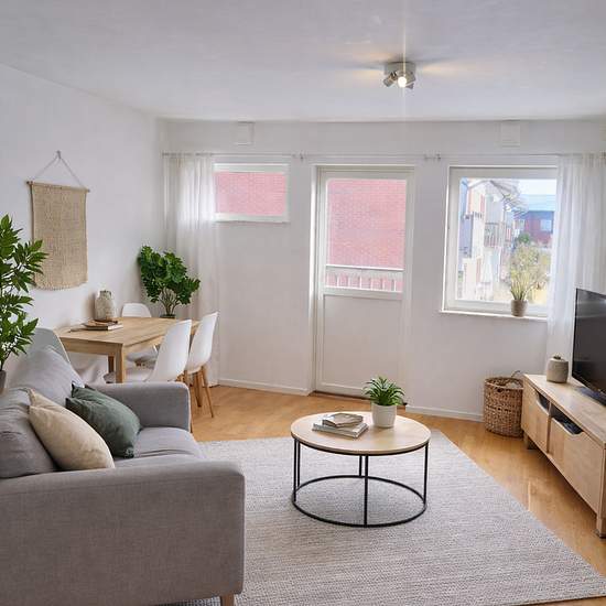 Welcome to a well-planned studio on the second floor with a balcony. About the apartment Entrance via an external walkway. You are greeted by light walls with parquet flooring throughout the apartment. Open plan between the kitchen and the living area. Fully tiled bathroom with shower screens. The kitchen has flat-fronted cabinets built up to the ceiling, stainless steel appliances equipped with a combined fridge/freezer, built-in oven with induction hob and extractor fan. Storage in the form of a walk-in closet in the hallway. Open living a...