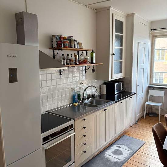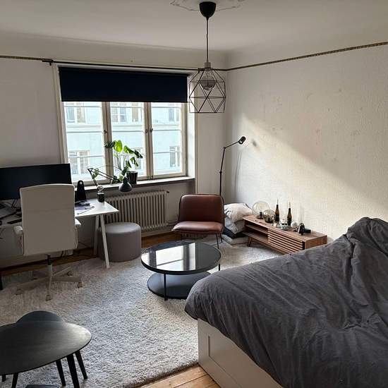Ligger på tredje våningen, näst högst upp i huset. Sydvästfönster mot en lugn gata. Stor hall, litet förråd till vänster när man kommer in, genomgående brädgolv, stort vardagsrum/sovrum, smalt men rymligt kök med allt som behövs(kyl/frys, spis/ugn, full diskbänk, dock ej diskmaskin), skafferi. Mycket originaldelar från tidigt 1900-tal. Huset är klassiskt och ligger på hörnet mellen sankt knuts väg och kamrergatan. St knuts torg ligger ett tiotal meter bort. Nära till grönområden, Möllevången, och gamla staden, väldigt nära till folkets park....