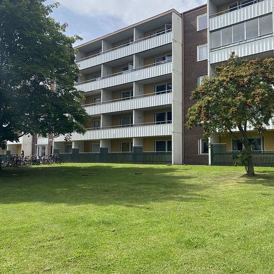5 min. to bus stations and even less to Willys and local stores and the local Library. Recently renovated and cosy apartment flat with balcony, 30 kvm. 1 room and 1 bathroom. Floor heating options for winter time. Heating and el included. Serviceavgift för hyresgäst: 321