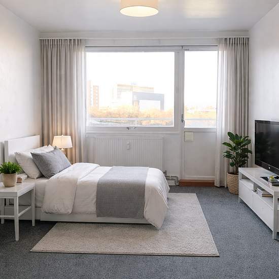 Apartment Please note that there will be no viewing. Using the information, pictures and floor plan you can form an impression of the apartment. The pictures are sample images from a similar apartment. Welcome to this 25 sqm apartment with an open floor plan and large windows that give a wonderful sense of space. Located in an area with extensive green spaces and close to restaurants, shops and grocery stores. The southwest-facing balcony gives you the chance to enjoy the sunset over the green area every evening. The kitchen is equipped wit...