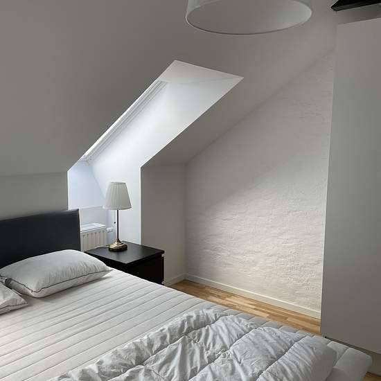 A nice furnished attic apartment with visible ceiling beams. Good layout with a small separate bedroom. The apartment has been renovated in recent years and is in very good condition. It is suitable to rent as a company apartment or to have as an overnight apartment. The regular rent is 10,100 kronor per month, but for the first two years the apartment is rented out with a rent discount of 2,739 kronor per month, after which a new discussion about the rent discount will take place.