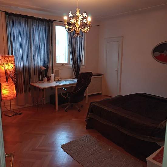 Hello, A room is for rent in a large (160 m2), very central, beautiful five-room apartment. The apartment is located on Davidshallsgatan by Triangeln. The room is 30 m2. It is furnished with a bed (180 x 200), wardrobes, a desk, a storage bench and shelves. The rent includes both electricity and broadband, heating and water. The apartment has a large bathroom with a shower and bathtub, two balconies and a guest toilet. We have a shared kitchen and a laundry room in the building’s basement. Two months’ fees as a deposit. There will be a total...