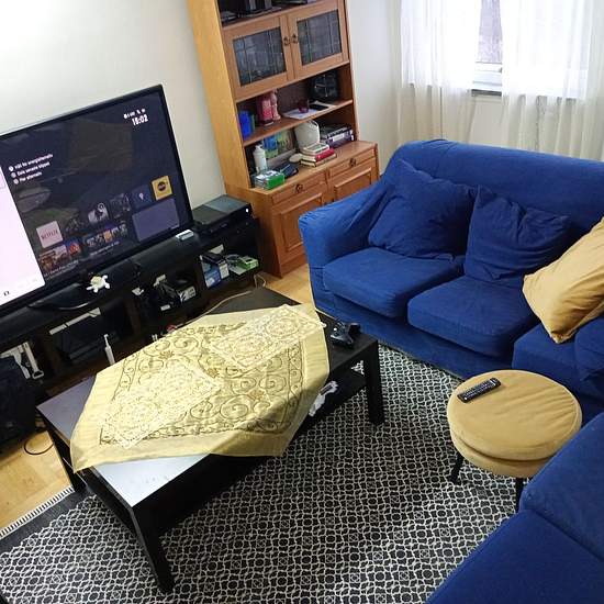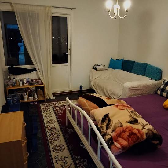 Hello! I have one bedroom to rent in a big 90m2 shared apartment. The apartment is furnished and is located 5 minutes walk to the bus and the supermarket. It takes 10-20 minutes by bus to town, depending on where you are going. There are two toilets and one bathroom. Service fee for tenant: 277