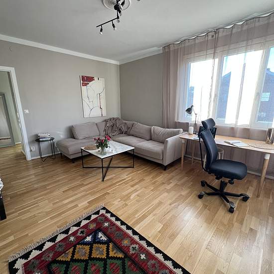 Room for rent in spacious apartment for a female tenant. You will have a private room and will be sharing the space with the female owner, who is often away from Gothenburg and is home +-two weeks per month. You will be able to choose your preferred room: either a spacious living room with a sofa and a working corner, with the closet in corridor (bed will need to be arranged by yourself). OR a comfy bedroom with huge bed, lot's of space for storage and french balcony. About the Apartment: Size: 57 sqm Move-in Date: as soon as possible. Fu...