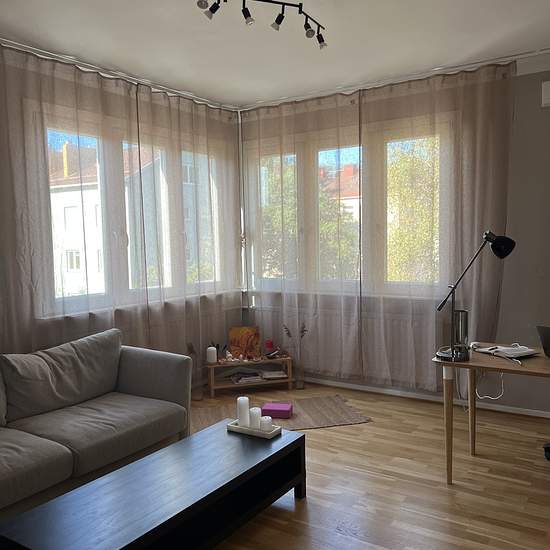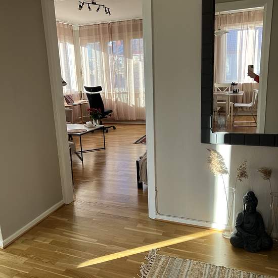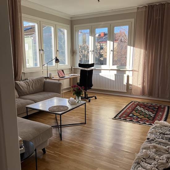 Room for rent in spacious apartment for a female tenant. You will have a private room and will be sharing the space with the female owner, who is often away from Gothenburg and is home +-two weeks per month. You will be able to choose your preferred room: either a spacious living room with a sofa and a working corner, with the closet in corridor (bed will need to be arranged by yourself). OR a comfy bedroom with huge bed, lot's of space for storage and french balcony. About the Apartment: Size: 57 sqm Move-in Date: as soon as possible. Fu...