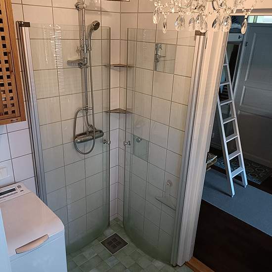 Welcome to the scenic Kranglans Udde! Adjacent to Nacka Nature Reserve in Stockholm County! Charming maritime studio apartment integrated into a unique villa, suitable for one person — for example a student, a younger person, or a weekly commuter to Stockholm. Private entrance, private bathroom with shower, washing machine, WC and sink. Practical, efficient and charming for one person; non-smoker, no pets, good references required; ideal for someone who appreciates living next to Stockholm's finest nature reserve — 3,000 hectares of wildern...