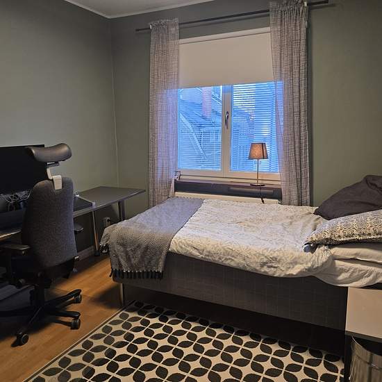 A room for rent with a shared bathroom. Preferably rented to weekly commuters. I am personally away about 1–2 days on weekdays. Possibility to use the living room on the nights I am away. Cleaning every other week is included in the rent. Service fee for tenant: 327