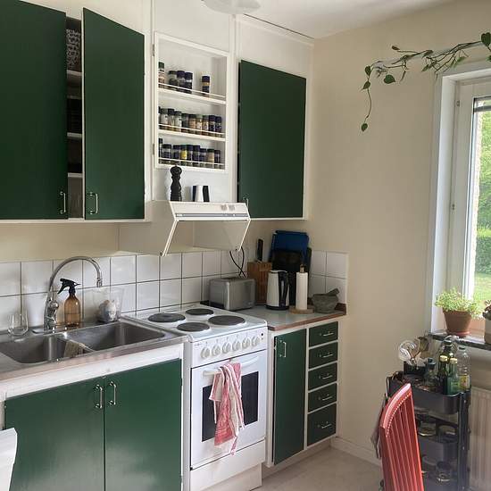 Nice studio apartment with a glazed sunroom and a private patio in a very quiet residential area. There is a playground in the area. Close to school/preschool, the swimming pool, exercise trails and shops in Gustafsberg. Service fee for tenant: 242