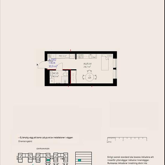Welcome to a nice one-room apartment (1 room and kitchen) of approx. 31 sqm at Centrumvägen 8F in Nykvarn. The apartment is on the third floor and a parking space can be rented in the adjacent garage. All residences are modernly furnished with beautiful single-strip oak parquet, a quartz countertop and fully tiled bathrooms with underfloor heating. All kitchens also have quality appliances such as an induction hob and a convection oven. Here you can move into an attractive, sustainable and smart home with mobile access. The new Nykvarn Centr...