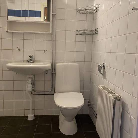 Pleasant two-room apartment with kitchen, 56 sqm. Floor 2 of 3. The apartment has one bedroom, one toilet, a kitchen and a living room with a balcony. Description: Large entrance hall with space for storage. Spacious bedroom with wardrobes. Kitchen with large pantry, dishwasher, fridge and freezer. Tiled bathroom with toilet, sink, shower and bathroom cabinet. Living room with parquet flooring and balcony (facing west with afternoon/evening sun). Other: Storage room, food cellar and laundry room are located in the basement. Housing associati...