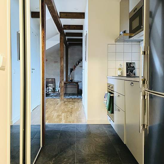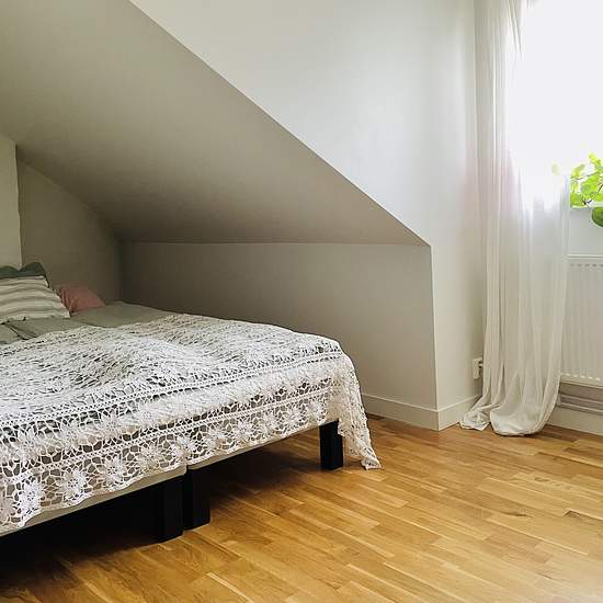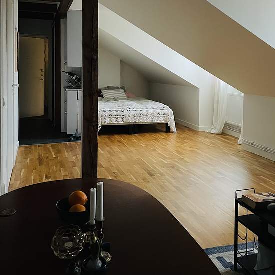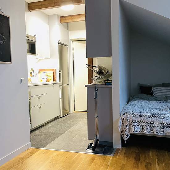 Charmig vindslägenhet på norr i Örebro, 34 kvm, 7158 kr/mån, Hjortstorpsvägen 9. Lägenheten är i mycket fint skick och välutrustad; Diskmaskin och micro i köket, tvättmaskin och torktumlare i kaklat badrum. Hallen har klinkers på golvet och platsbygd förvaringsutrymme med spegelskjutdörrar. Ekparkett i rummet. Förstahandskontrakt. Planlösningen är öppen och med en bra plats för en sovalkov. Snedtak och 2 fönsterkupor. Hyra 7158 kr/månad. Ledig 1/3 2026